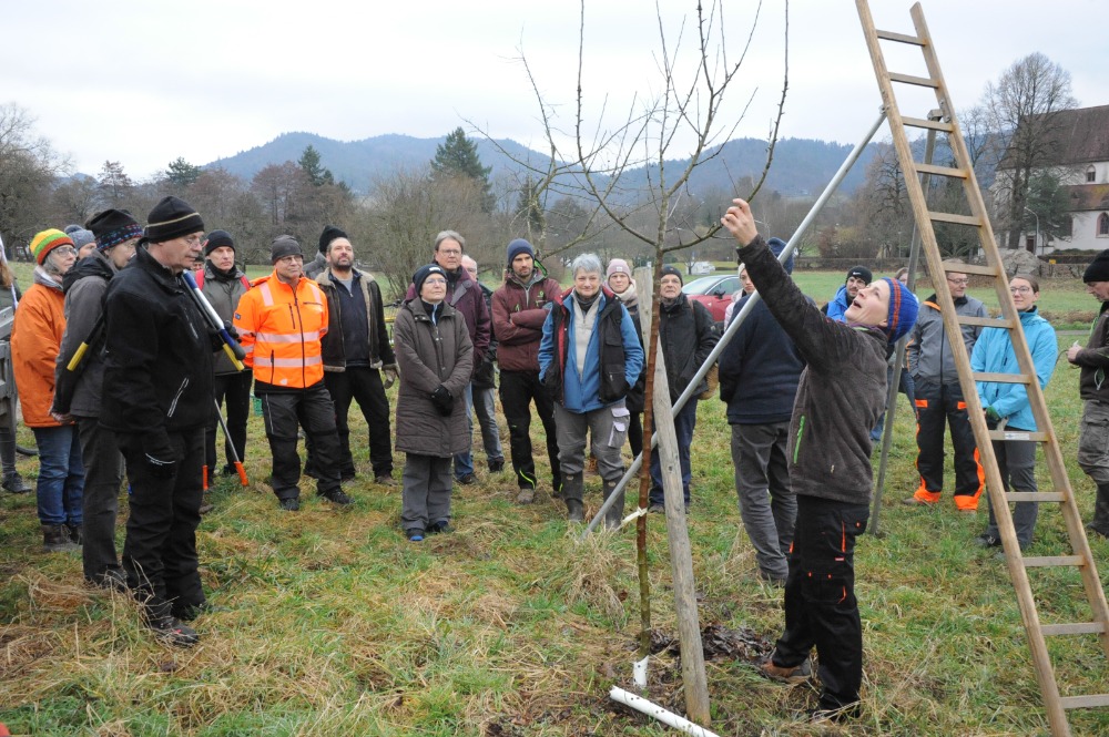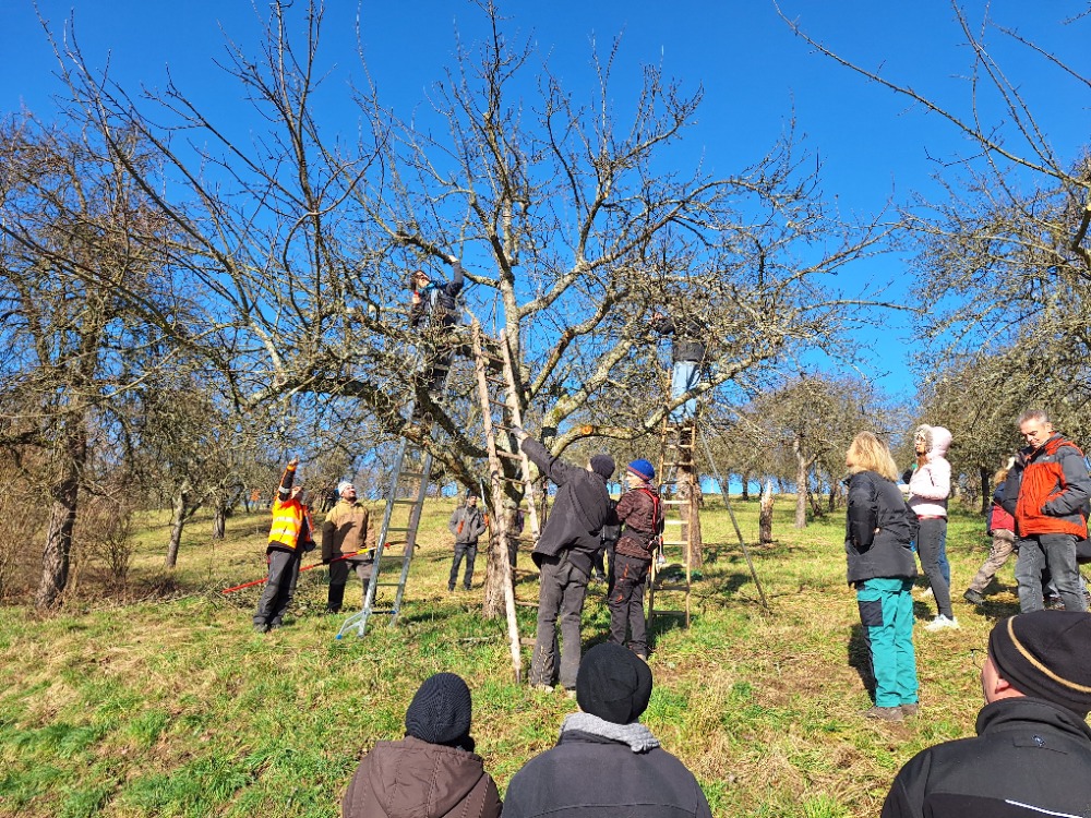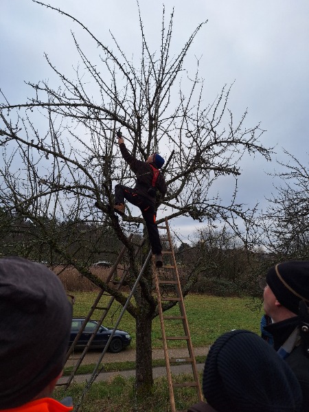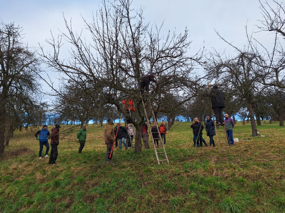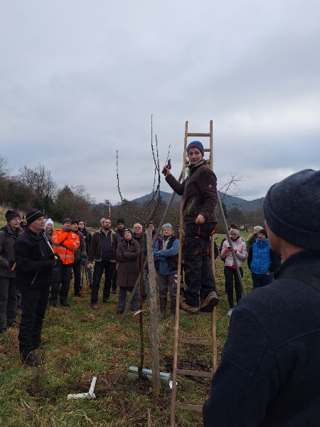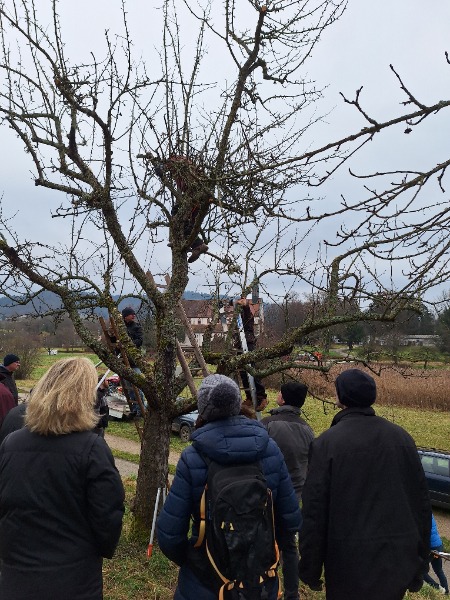 Der Förderverein Ortenauer Streuobstanbau (FOSA) veranstaltete am Samstag, den 3. Februar 2024 einen Obsthochstamm-Schnittkurs auf der Streuobstwiese am Spitalberg bei der Waldbachsenke in Offenburg. Der Schnittkurs wurde von FOSA-Mitglied und Obstbauberaterin Miriam Pfundstein mit viel Engagement durchgeführt.