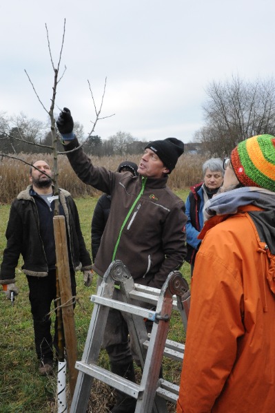 Es wurde der Erziehungsschnitt von jungen Bäumen und der Erhaltungs- bzw. Verjüngungsschnitt bei älteren Bäumen erläutert.